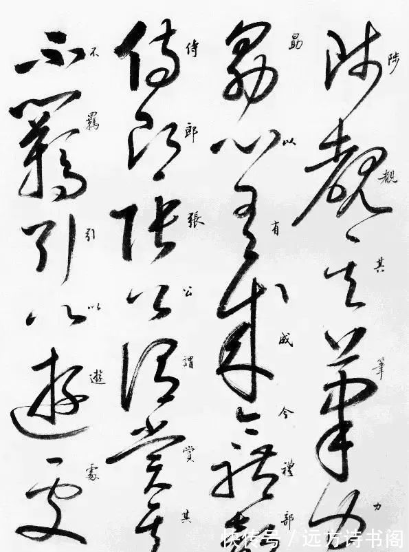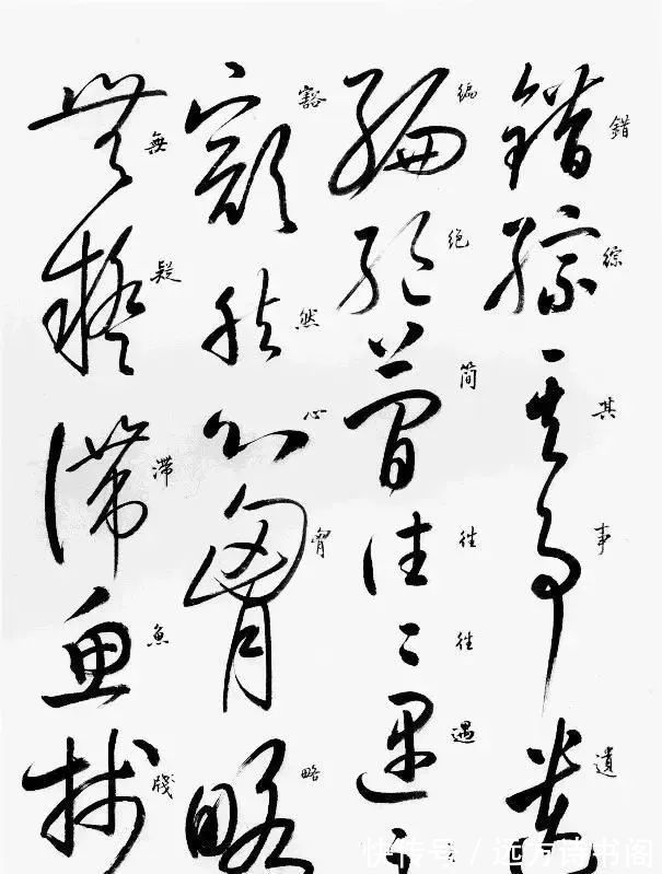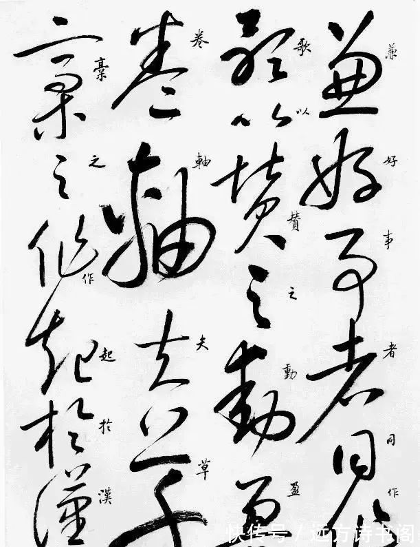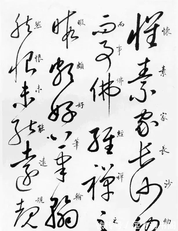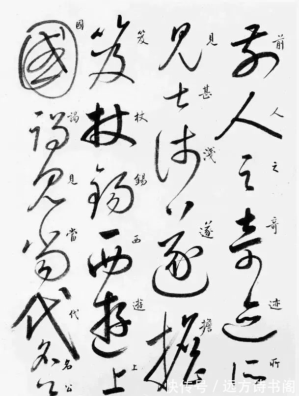 这里我们不但可以看到启功临摹的草书,而且旁边还有行书旁白,方便大家学习。启功临摹的《自叙帖》形神兼备,看起来流畅自然,果真是水平在线的书法大家。